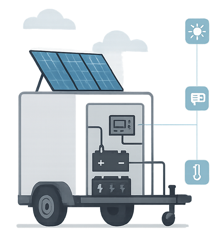 We design and build mobile, solar-powered coldrooms that work where the grid doesn’t. Whether you’re on the land, at the markets, or managing a remote site, our systems offer quiet, off-grid cooling with no diesel and no hassle.